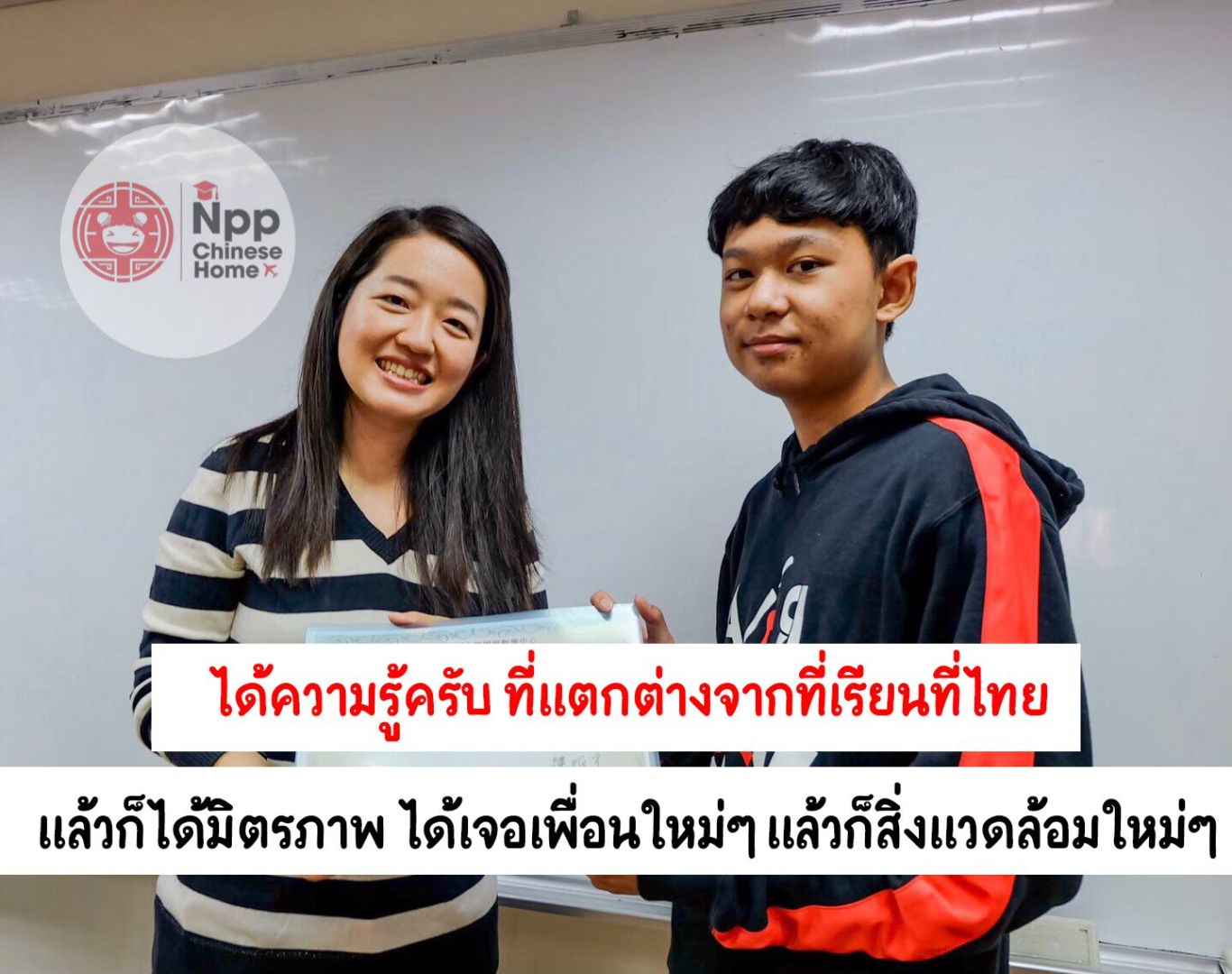 สิ่งที่น้องได้กลับมาจากไต้หวัน ไม่ใช่แค่ความรู้ทางภาษาจีนที่แตกต่างจากที่เคยเรียนมา แต่เป็นมิตรภาพ ได้เจอเพื่อนใหม่ และสิ่งแวดล้อมใหม่ ความรู้เนื้อหาในหนังสือในห้องเรียนอาจจะให้ความรู้ได้ในระดับหนึ่ง แต่เด็กๆก็ต้องการประสบการณ์ ทักษะการใช้ชีวิตด้วย เพราะฉะนั้นแล้วจึงต้องให้เด็กออกไปค้นหาด้วยตัวเอง NPP CHINESE HOME จึงอยากเป็นส่วนหนึ่งของการสร้างเสริมประสบการณ์ของเด็กๆ อย่างที่นักเรียนในแคมป์ของเราหลายๆคนได้กลับมาและถ้าพ่อแม่ ผู้ปกครอง เด็กๆคนไหนสนใจที่จะไปกับเรา สามารถติดต่อเรามาได้เสมอเลยนะคะ